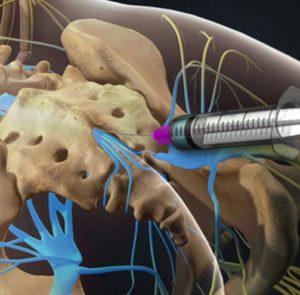 It is done either with the patient on the side for most neck injections and with the patient on the stomach for back injections. Occasionally other positions are used to optimize the X-ray view. Once in place, the injection is made and this will often feel like the normal pain that the patient feels in the distribution of that particular spinal nerve root. Finally, the needle is removed and an adhesive bandage is applied.
